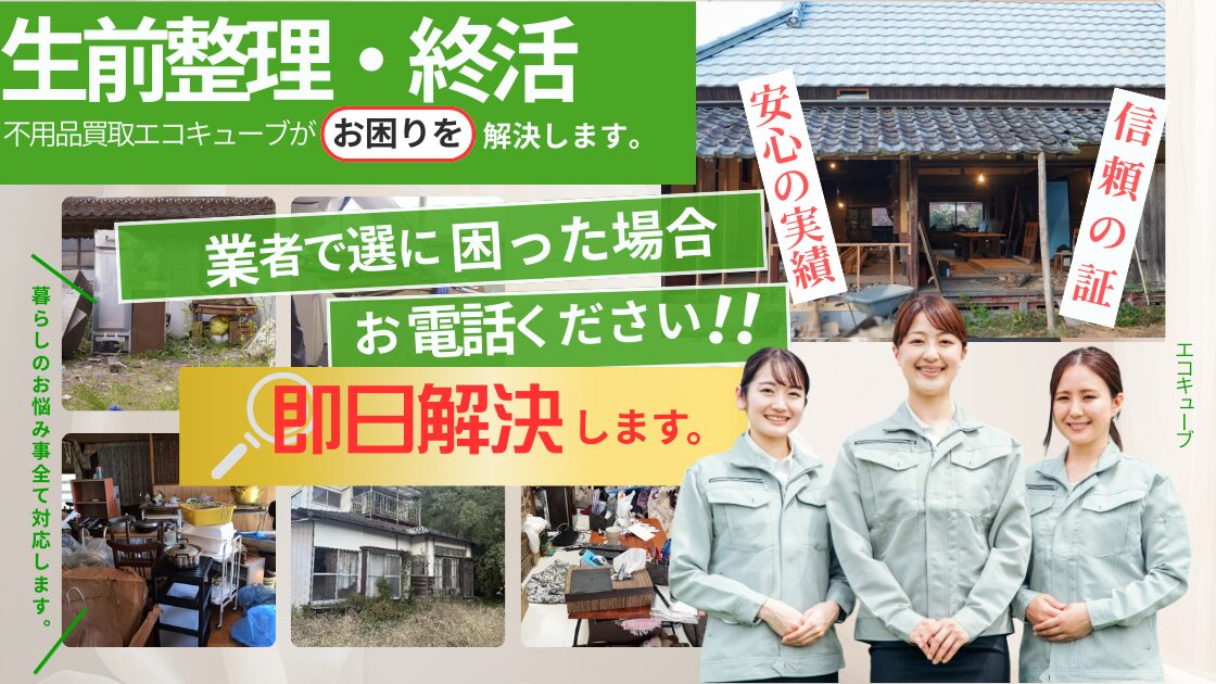 生前整理の買取・片付けはエコキューブへ。価値ある品を現金化し、整理費用を安く抑えてお部屋を一新。