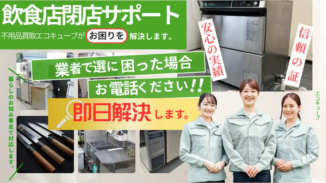 飲食店の閉店・厨房機器買取はお任せ。買取額を撤去費から差し引き、トータルの閉店費用を安く抑えます。