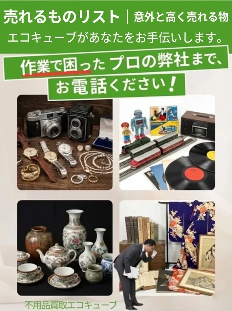 一見ガラクタに見えるものでも、収集家や海外市場では高値で取引される「お宝」が眠っていることがよくあります。名取市・仙台市で数多くの遺品整理を行ってきたプロの視点から、「実は高く売れるもの15選」を公開します。