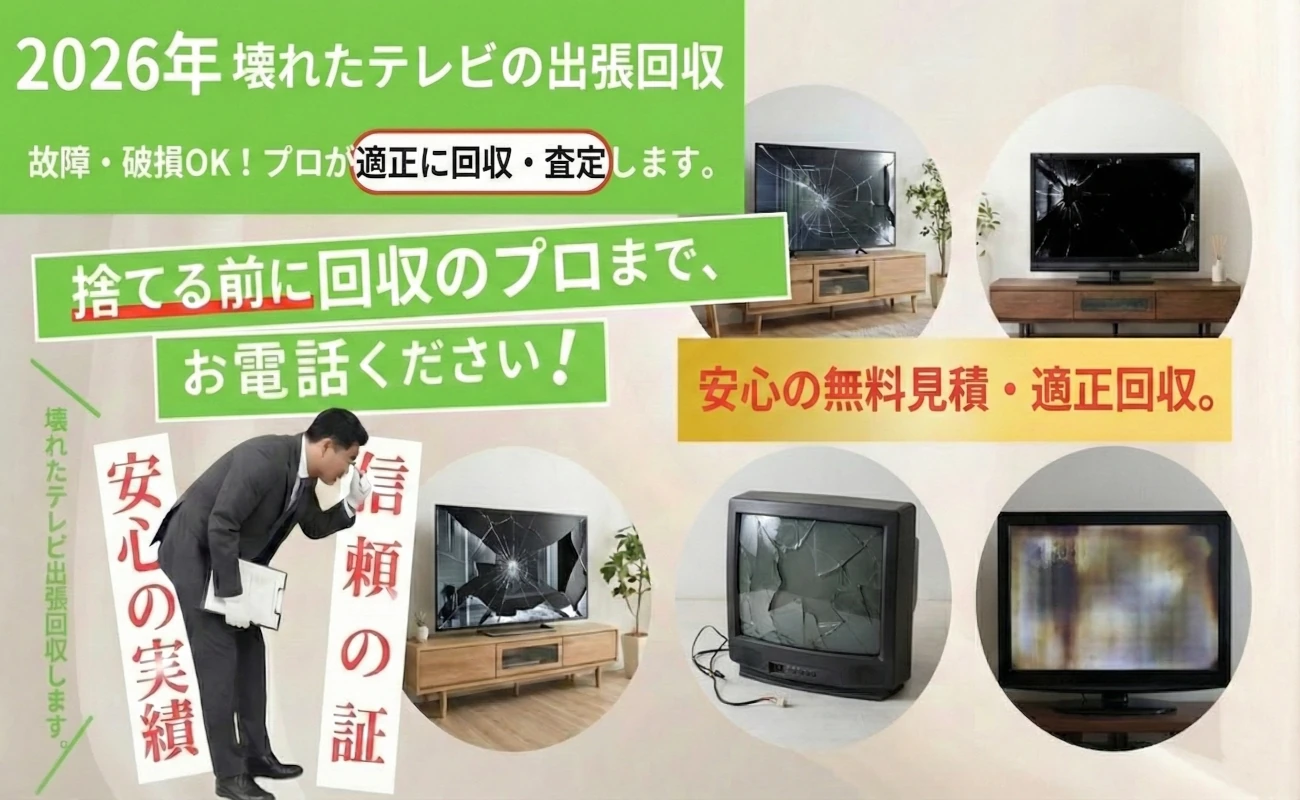 自治体の粗大ゴミでは回収してもらえないテレビ。リサイクルショップでも断られがちな以下の状態でも、当社なら回収・適正処分が可能です。