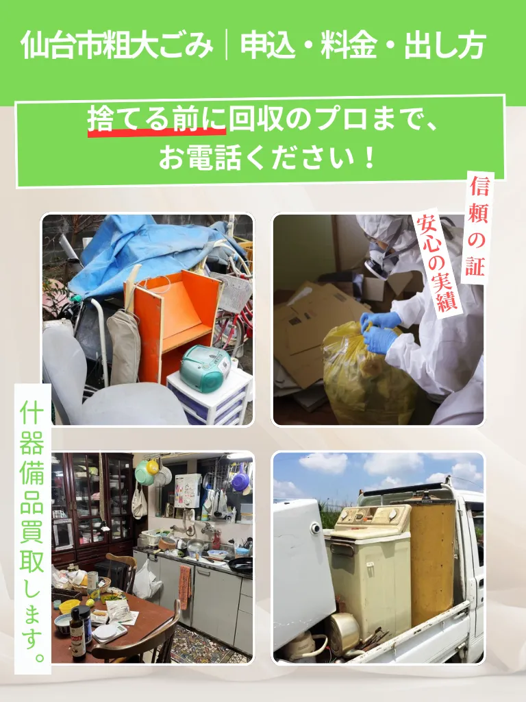 この記事では、仙台市の自治体による「行政収集」の手順・料金と、「民間業者」に依頼する場合の相場・メリットを比較解説します。
