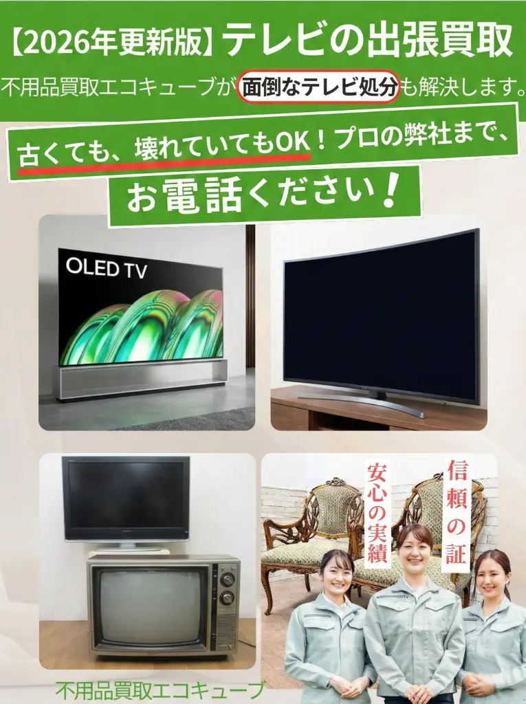 不用品買取エコキューブでは、仙台市および宮城県全域で薄型テレビ・有機ELテレビの高価買取を強化中です。